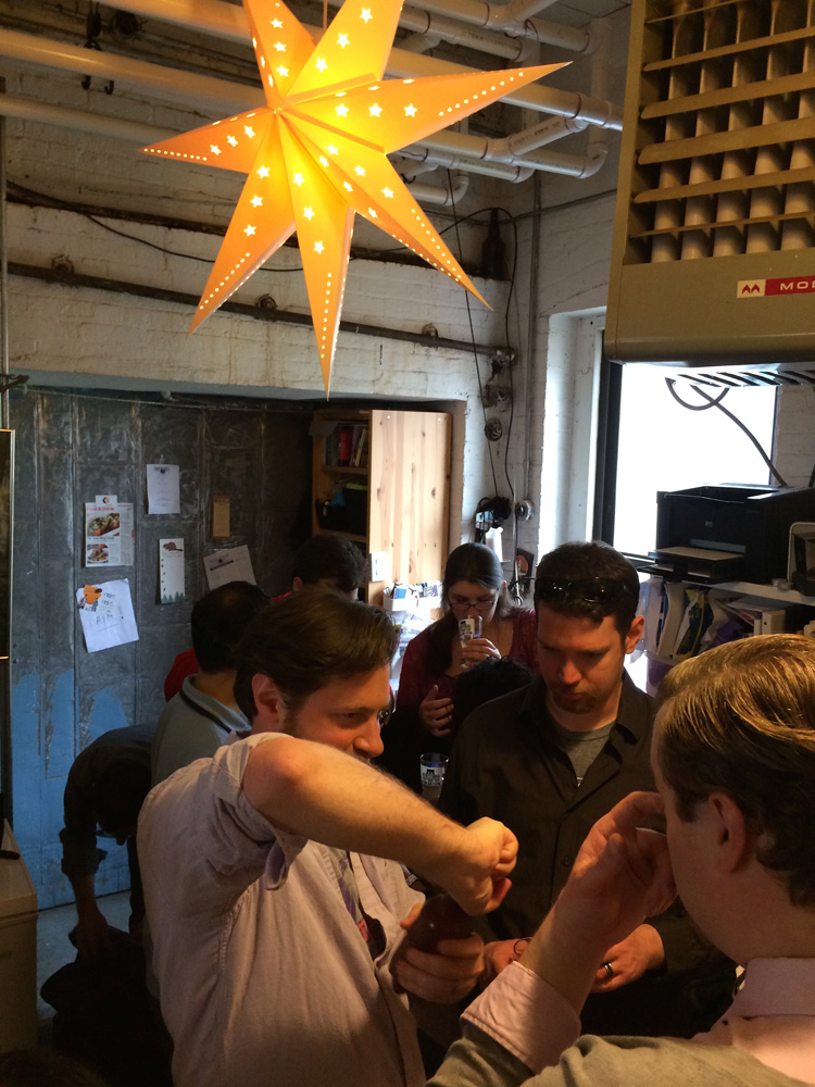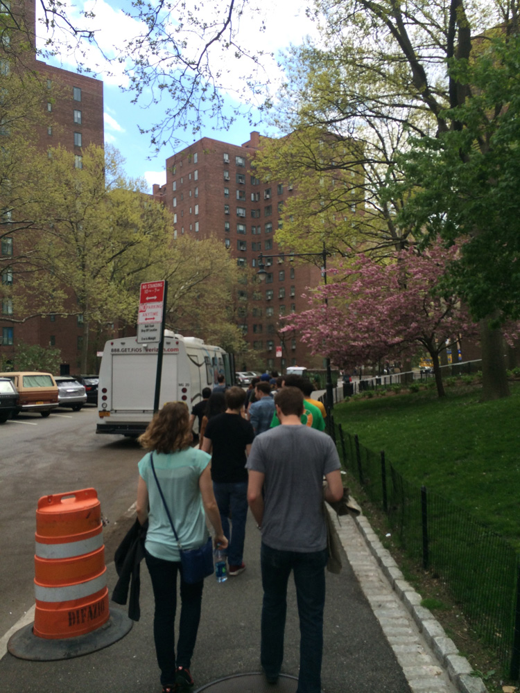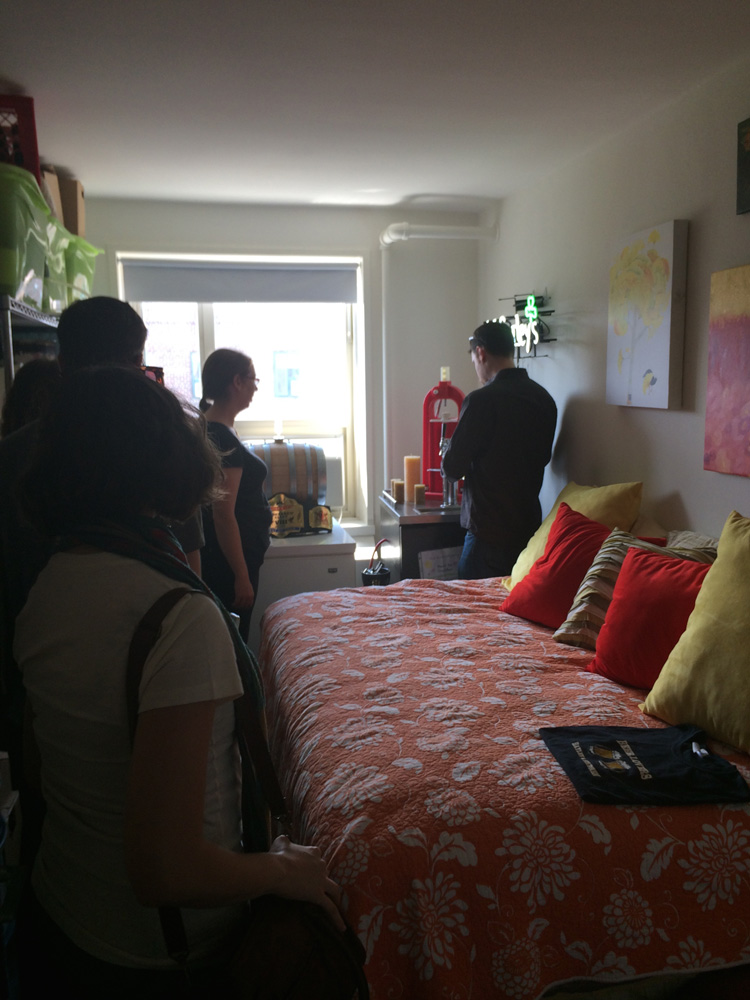 Við byrjuðum á Manhattan í Stuyvesant Town. Fyrstu gestirnir voru ung hjón Stephen og Haley sem vinna og brugga saman. Hún er sérfræðingur um bjóra á veitingastaðnum sem þau vinna á, Taproom No. 307, og hann er kokkur sem leikur sér með bjóra í eldsmennsku sinni. Yfirleitt er hún hugmyndafræðingurinn bak við bjórana sem þau brugga en hann sér um tæknilegu útfærsluna. Það var mjög gaman að sjá hvernig þau koma þessu öllu fyrir í lítilli íbúð. Gestaherbergið er nýtt út í æsar sem geymsla fyrir bjórgræjur, og það er kegerator við hliðina á gestarúminu (húsfreyjan gantaðist með það að það væri auðveldlega hægt að liggja í rúminu og hella beint upp í sig).