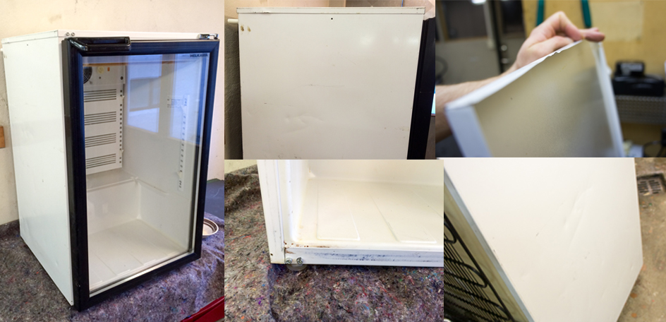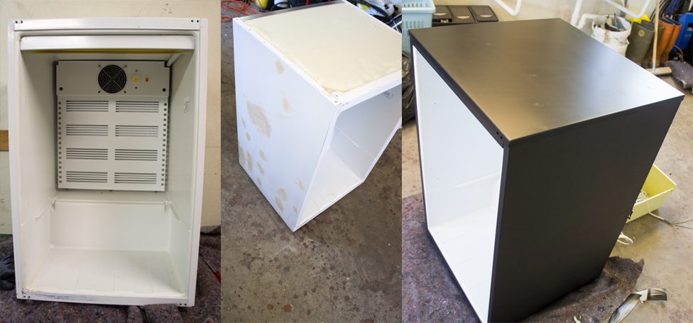 Fyrst fann ég notaðan kæli með glerhurð á bland sem var í frekar lélegu ástandi. Ég tók hann allan í gegn og spreyaði hann upp á nýtt.