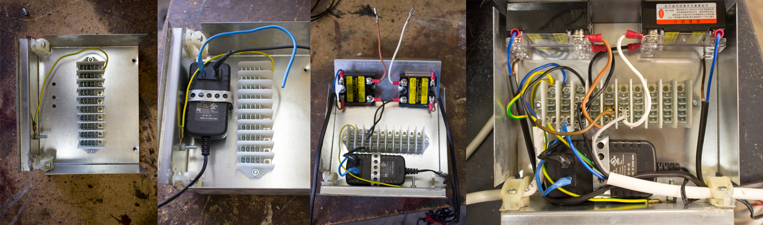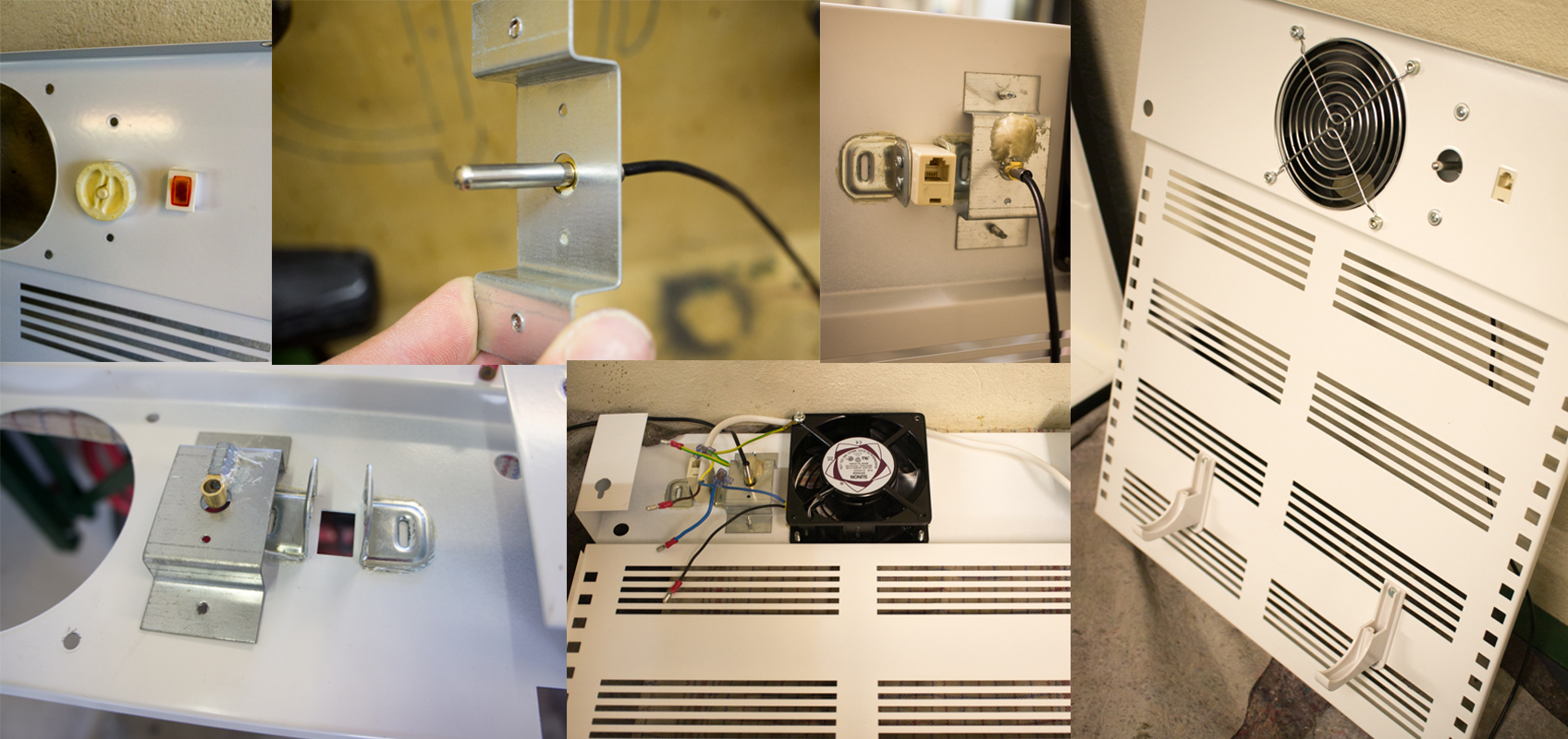 Það kom síðan í ljós að þetta var mjög hentugur skápur í þessar breytingar. Að leiða snúrur, festa tengi og hitamæli og slíkt kom mjög vel út.