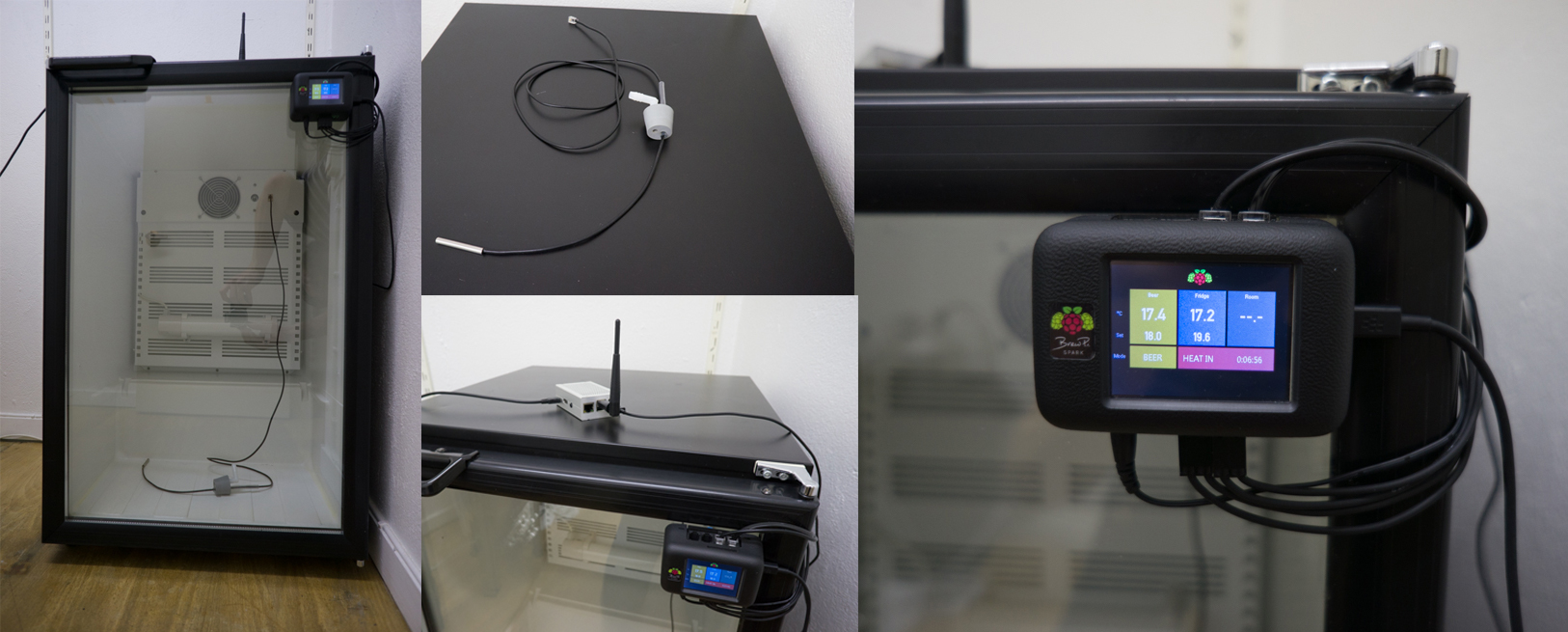 Það eru 2 hitamælar notaðir í þessari stýringu, einn sem mælir hita í skápnum sjálfum og annar sem mælir hitann í virtinum. Með því að gera þetta svona er hægt að halda nákvæmi upp 0,1 gráðu. BrewPi stýringin sjálf er Spark Core talva og hún er með innbygðu WiFi, hins vegar er BrewPi en í þróun og ekki búið að setja inn WiFi virknina enn, ég þarf því að hafa Raspberry-inn tengdan í beint í fyrst um sinn. BrewPi er líka með snertiskjá og hugmyndin er að þú eigir að geta stillt stýringuna með honum en það er líka eitthvað sem á eftir að þróa.
