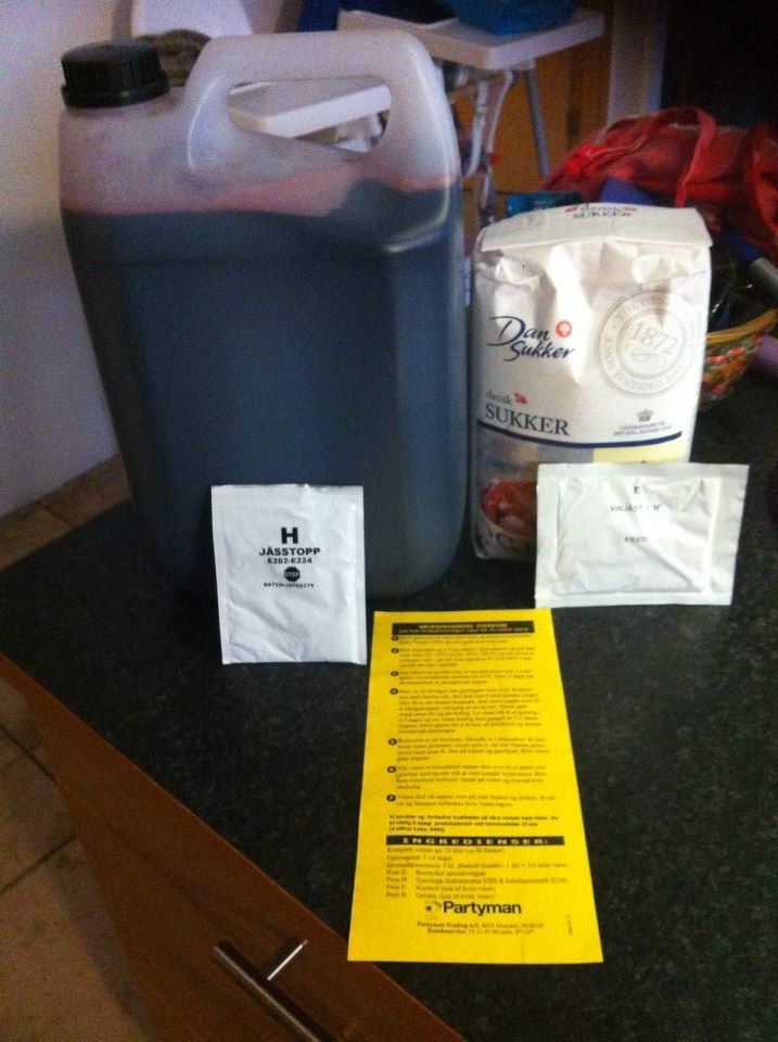 Það koma fram að það maður ætti að fylla upp að 23 L markinu en það væri hægt að setja upp að 20 L markinu ef maður vildi meiri fyllingu. Sem ég gerði því að þetta er púrtvín og það er vanalega um 20% en ég vildi ekki breyta þessu um of þá er bara að sjá hvernig rætist úr þessu.